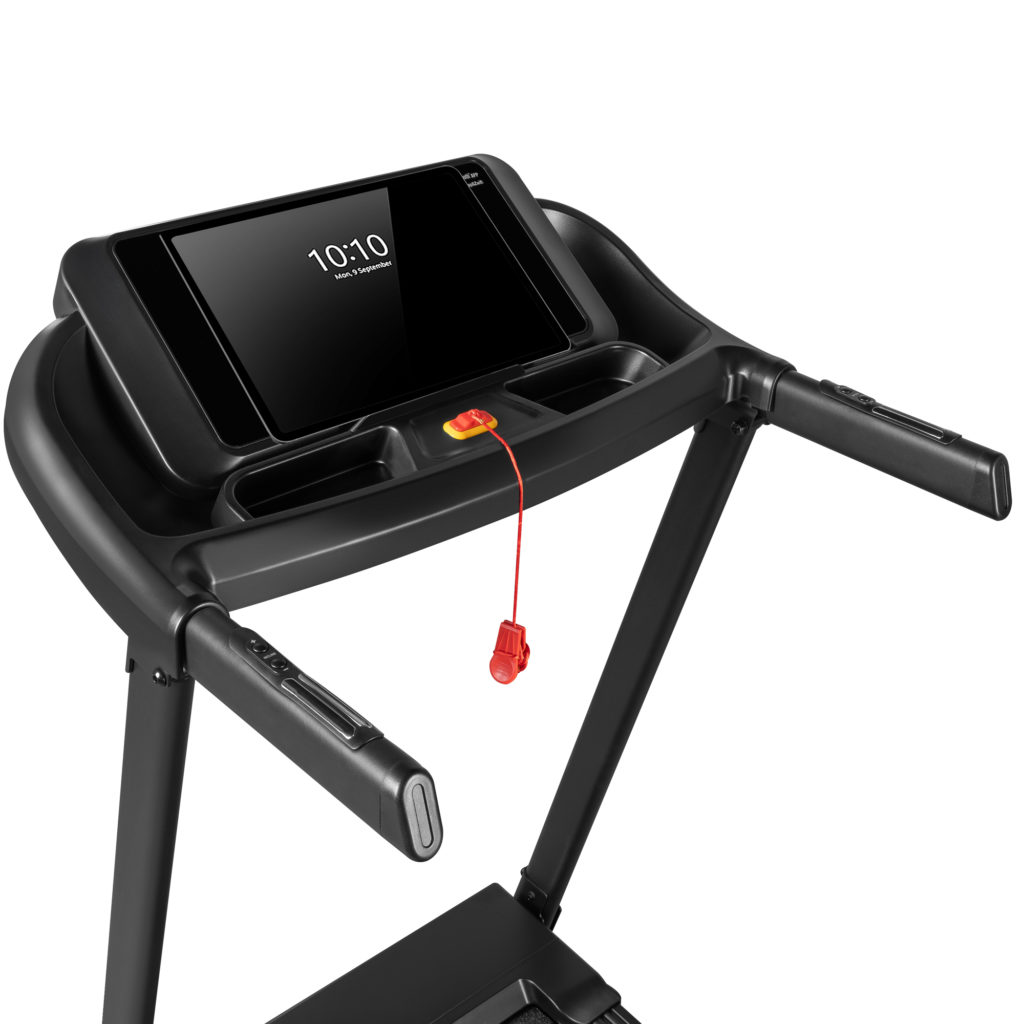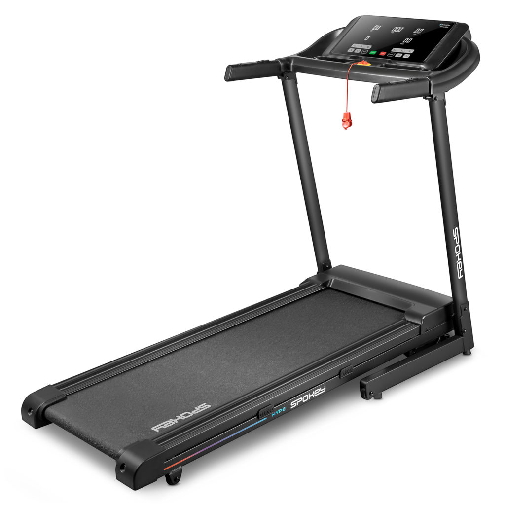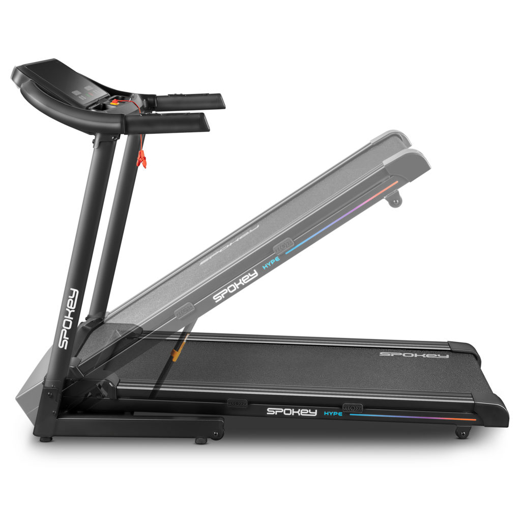 Składana bieżnia z automatycznie sterowanym kątem nachylenia. Wyposażona w klucz bezpieczeństwa, uchwyt na tablet oraz butelkę, dzięki czemu wszystko czego potrzebujesz, zawsze będzie pod ręką. Duży ekran LED pozwala śledzić postępy treningu informując o ilości spalonych kalorii, przebytym dystansie, czasie oraz pulsie. Bieżnia posiada 15 programów treningowych i możliwość definiowania treningu dla 3 różnych użytkowników oraz przyciski szybkiego wybory prędkości. Cztery punkty amortyzujące zmniejszają obciążenie stawu podczas treningu, a możliwość składania ułatwia jej transport i przechowywanie.