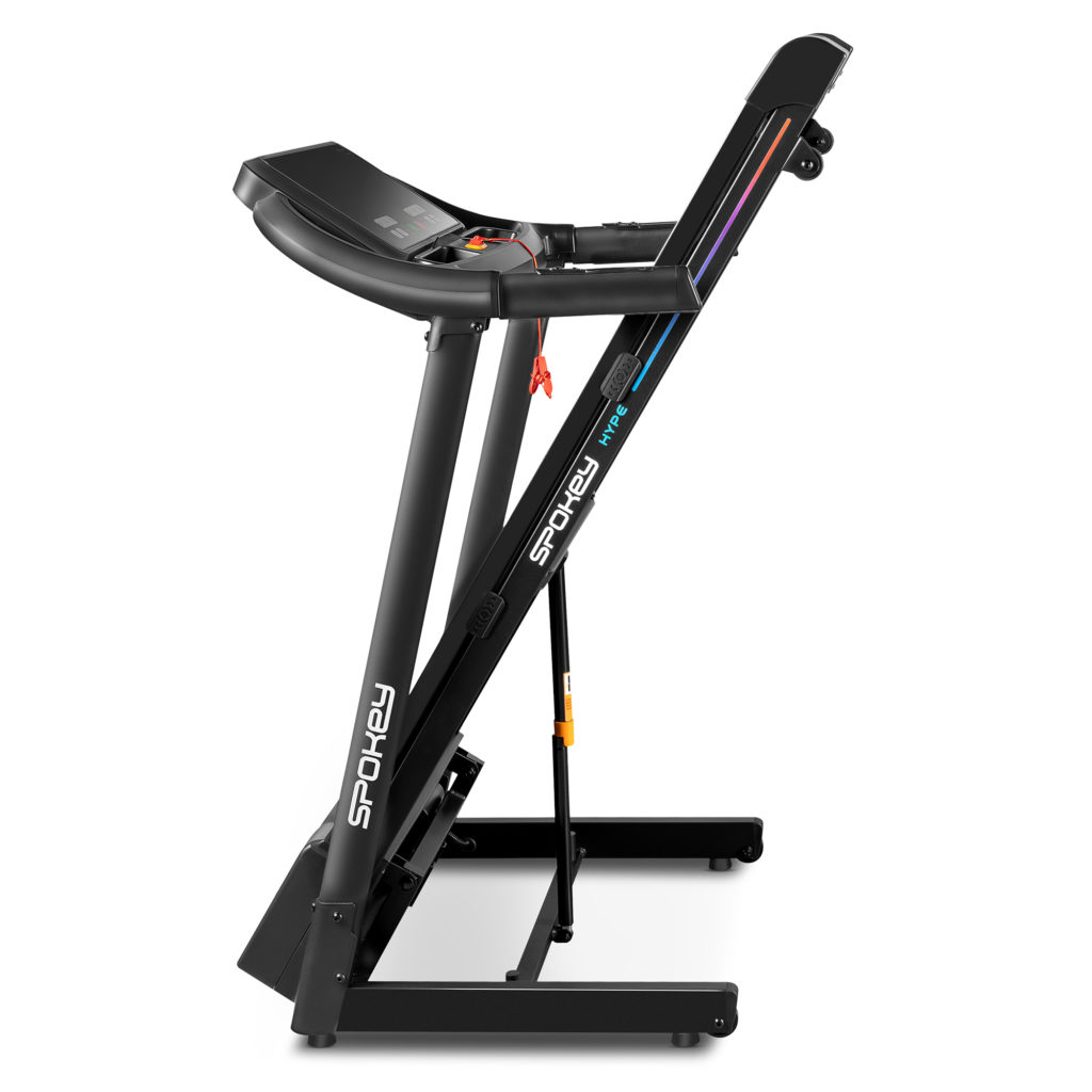 Składana bieżnia z automatycznie sterowanym kątem nachylenia. Wyposażona w klucz bezpieczeństwa, uchwyt na tablet oraz butelkę, dzięki czemu wszystko czego potrzebujesz, zawsze będzie pod ręką. Duży ekran LED pozwala śledzić postępy treningu informując o ilości spalonych kalorii, przebytym dystansie, czasie oraz pulsie. Bieżnia posiada 15 programów treningowych oraz przyciski szybkiego wybory prędkości. Cztery punkty amortyzujące zmniejszają obciążenie stawu podczas treningu, a możliwość składania ułatwia jej transport i przechowywanie.
