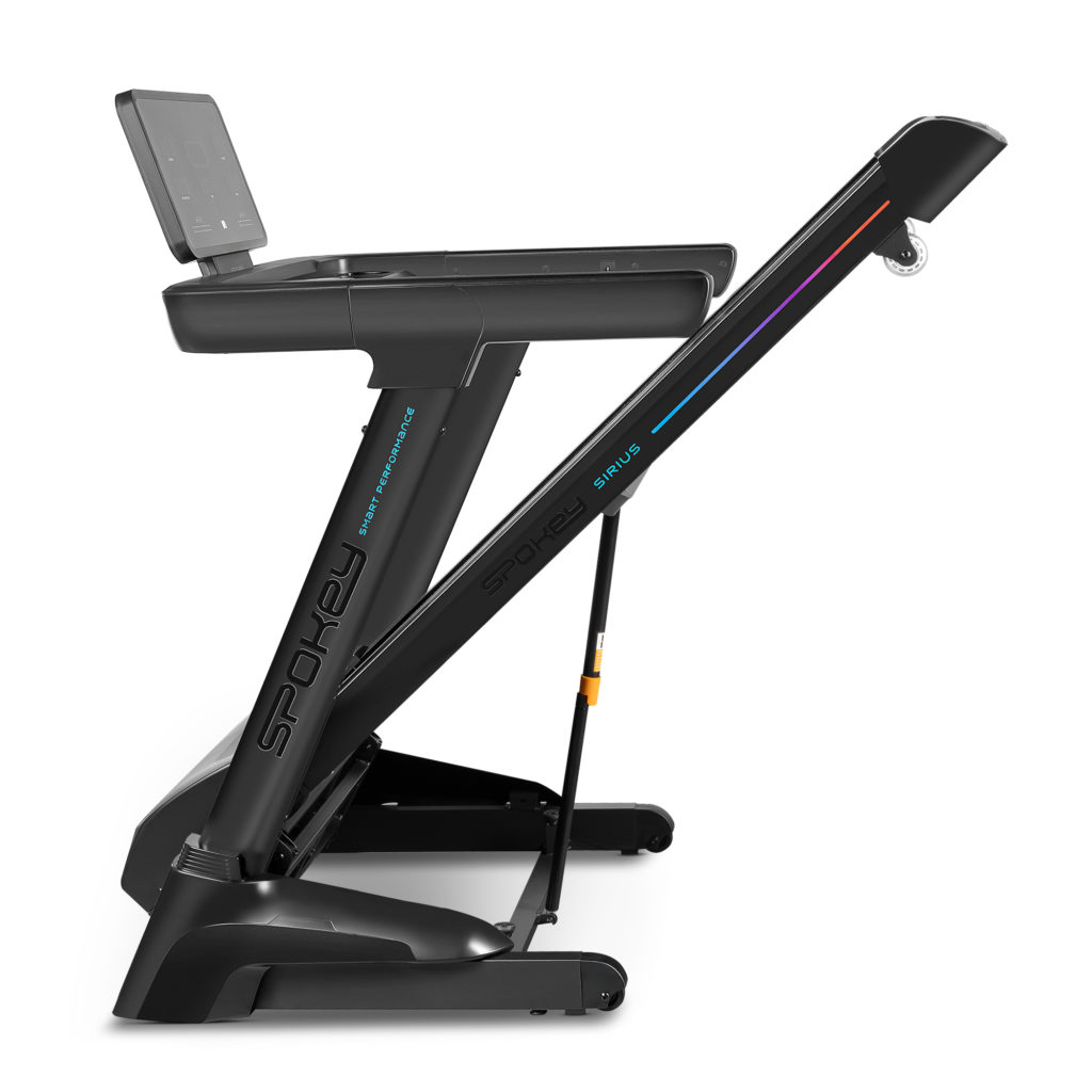 Nowoczesna bieżnia wyposażona w silnik bezszczotkowy, który charakteryzuje większa trwałość i niezawodność. Brak szczotek sprawia, że silnik ma kompaktową konstrukcję i jest lżejszy, co przekłada się na lepsze wykorzystanie energii. Duży wyświetlacz LED pozwala monitorować czas, dystans, prędkość oraz puls. 12 programów treningowych oraz możliwość zmiany nachylenia bieżnia pozwala na idealne dopasowanie treningu do własnych potrzeb. Możliwość składania oraz kółka transportowe ułatwiają transport oraz przechowywanie.