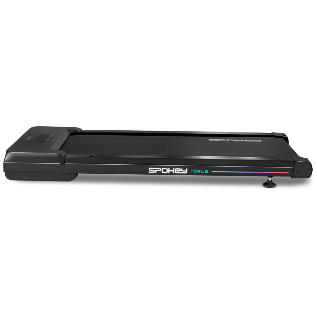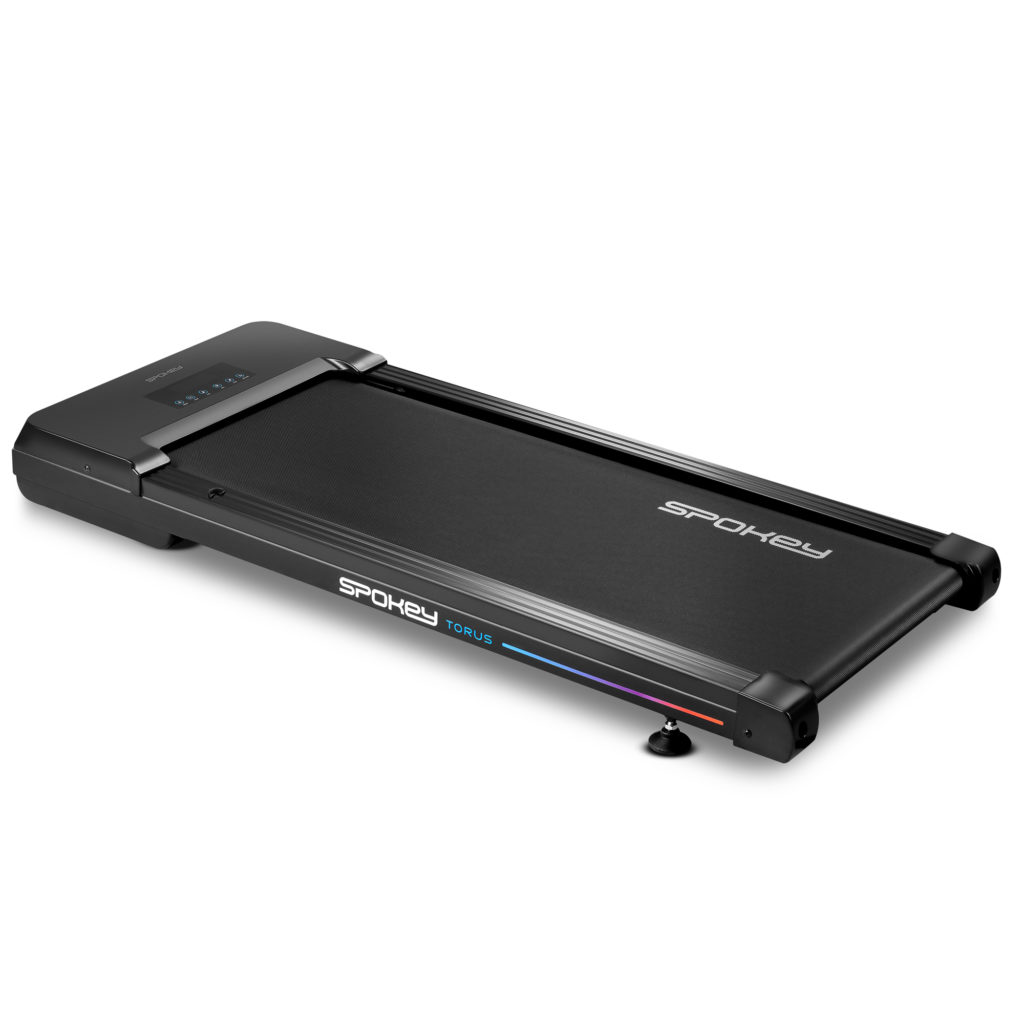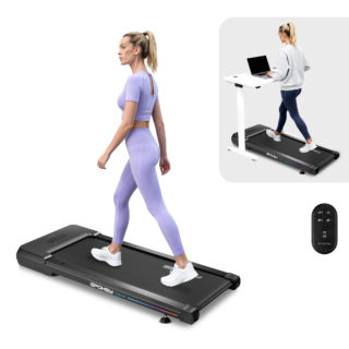 Kompaktowa bieżnia typu walking pad, idealna do lekkiego treningu domowego. Posiada możliwość zmiany kąta nachylenia, co dodatkowo urozmaica intensywność treningu. Konsola z wyświetlaczem LED informuje o prędkości, przebytym dystansie, czasie oraz ilości spalonych kalorii. Dzięki niewielkim rozmiarom bieżnia jest łatwa w transporcie i przechowywaniu. Sterowana pilotem.